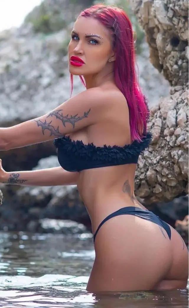 La sua estetica è volutamente estrema: make-up marcato, eyeliner aggressivo, labbra piene e truccate, unghie lunghe, tatuaggi ben visibili. Il suo corpo è parte dello spettacolo: uno strumento di seduzione, potere e comunicazione non verbale. Ogni foto, ogni video, ogni outfit racconta una storia di trasgressione, controllo, dominio e autoaffermazione.